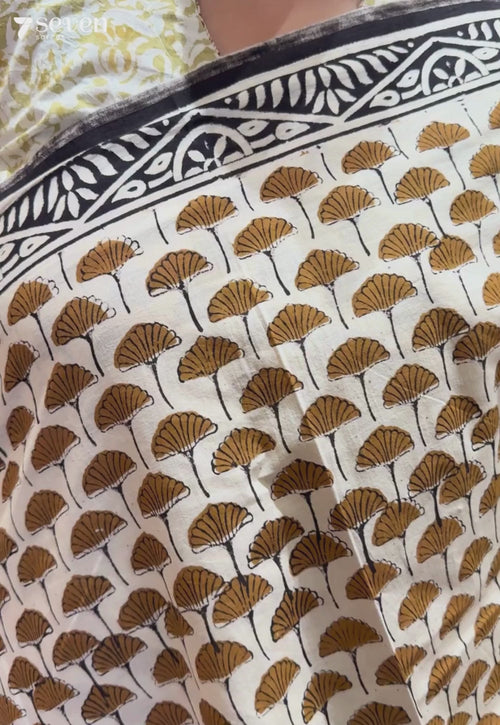 One of the earliest known methods of textile printing, Usage of blocks was the most preferred way for many centuries due to the highly artistic results. The last few decades have seen this art slowly perish due to many digital and screen printing options available. However the authenticity is impossible to copy. It is for this reason that all of the block prints used by Seven Sarees are original, hand crafted and transferred using the highest quality dyes. A keen eye can spot the multiple imperfections in the transfer which is so synonymous with handwork, and this gives the saree its character. Presenting Romance in Repeat, our collection of original hand-made block printed sarees.